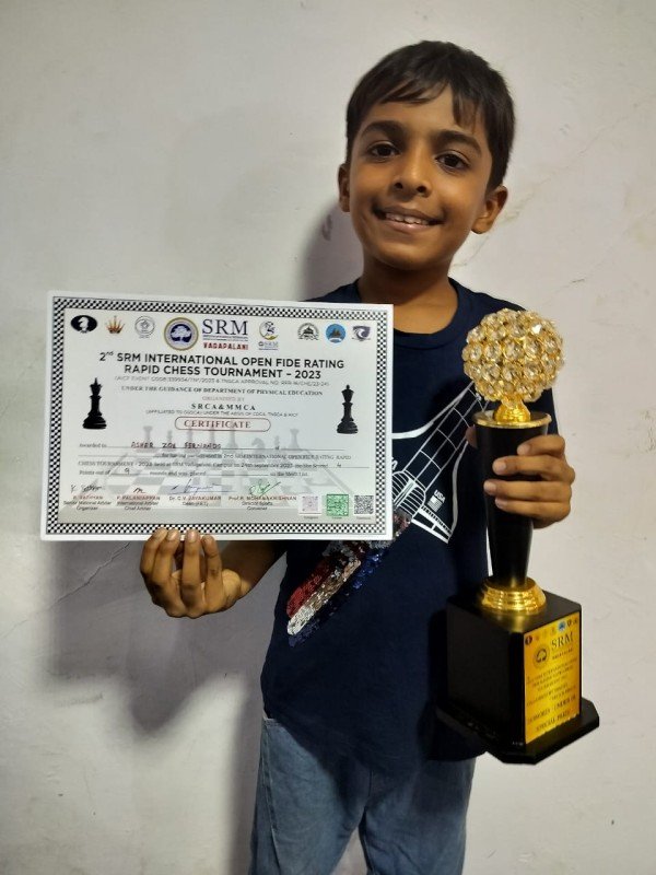 Won under 8 age category prize in The International FIDE rating chess tournament held in Chennai